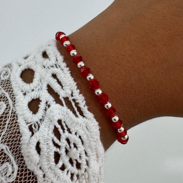 PULSERA CRISTALES CONICO ROJO