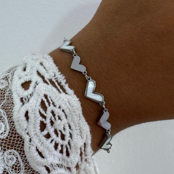 PULSERA ACERO CORAZONES NACAR Y LISOS
