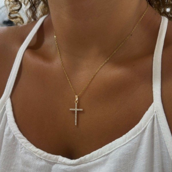 CONJUNTO DORADO CRUZ FINA BRILLOS