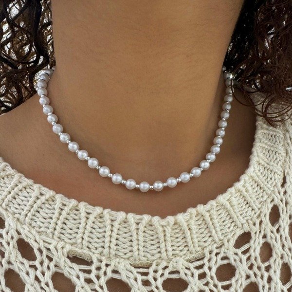 COLLAR PERLAS 6MM CON ESFERA PLATEADA
