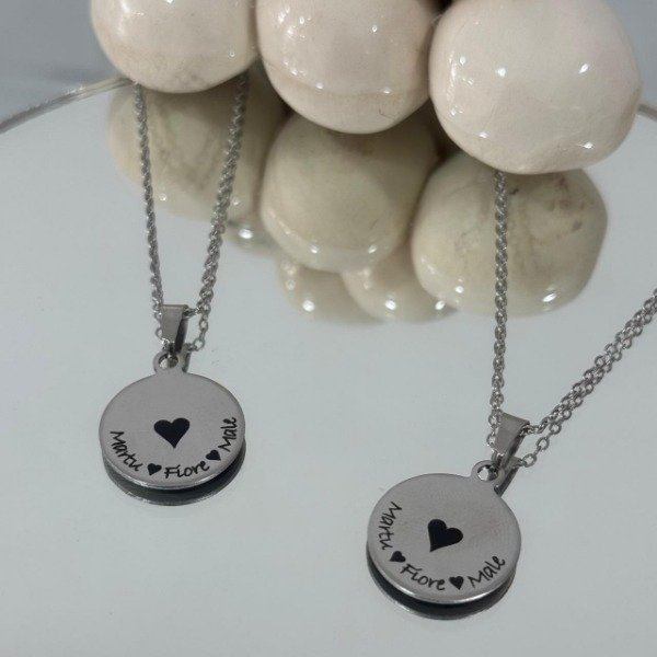 • Dije de 20 mm con grabado del lado brillante (precio incluido).