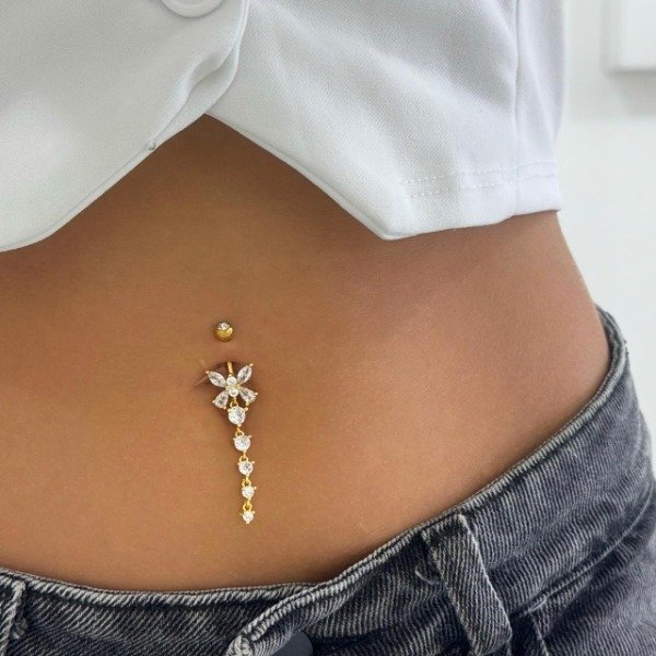 PIERCING DORADO OMBLIGO COLGANTE MARIPOSA CON CHISPAS